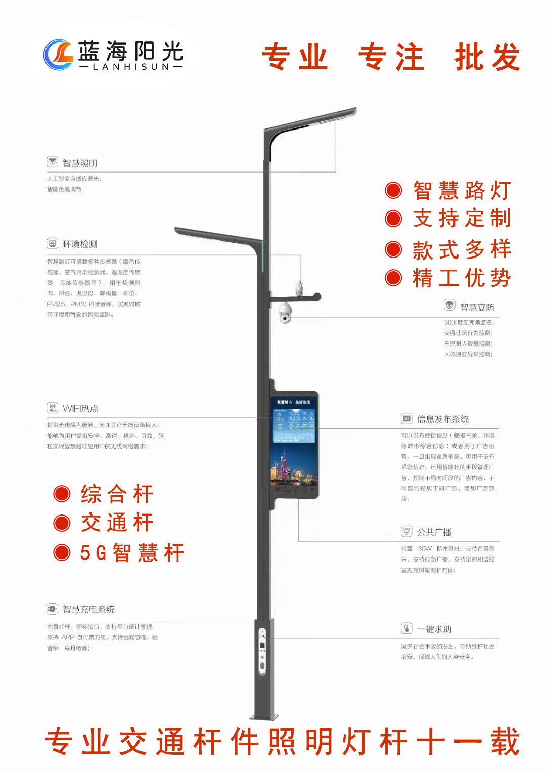 歡迎來到青島智慧LED路燈桿制造商-藍(lán)海陽光,我們致力于打造城市照明的新潮流。無論是改造老舊路燈還是建設(shè)新的照明項目,我們擁有豐富的經(jīng)驗和專業(yè)知識,為您提供卓越的解決方案。 我們的智慧LED路燈桿將為您的城市帶來革命性的變化。首先,我們采用最先進(jìn)的LED技術(shù),提供高效節(jié)能的照明效果,使您的城市更環(huán)保、更節(jié)能。LED光源的持久壽